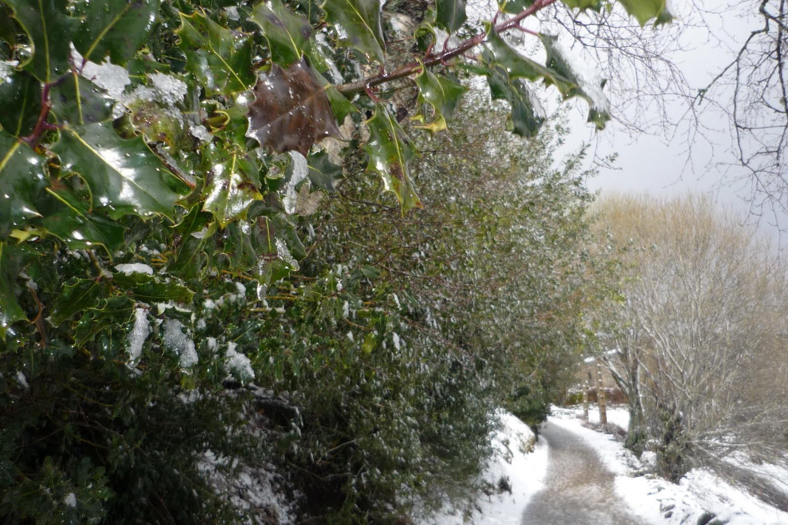 Está a nevar no Cebreiro, a estrada e o caminho estão cobertos de branco. Parece que esta vai ser uma etapa muito especial. Até ao Alto do Poyo, apanho nevões intensos de uma neve muito fina que me bate com força na cara.